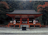 崇徳天皇と天皇の御母である待賢門院をご一緒に祀られた神社。色鮮やかな朱塗流造と桧皮茸の本殿は、明治44年(1911)から大正2年(1913)にかけて建てられたもので、古の荘厳な趣を醸し出しています。